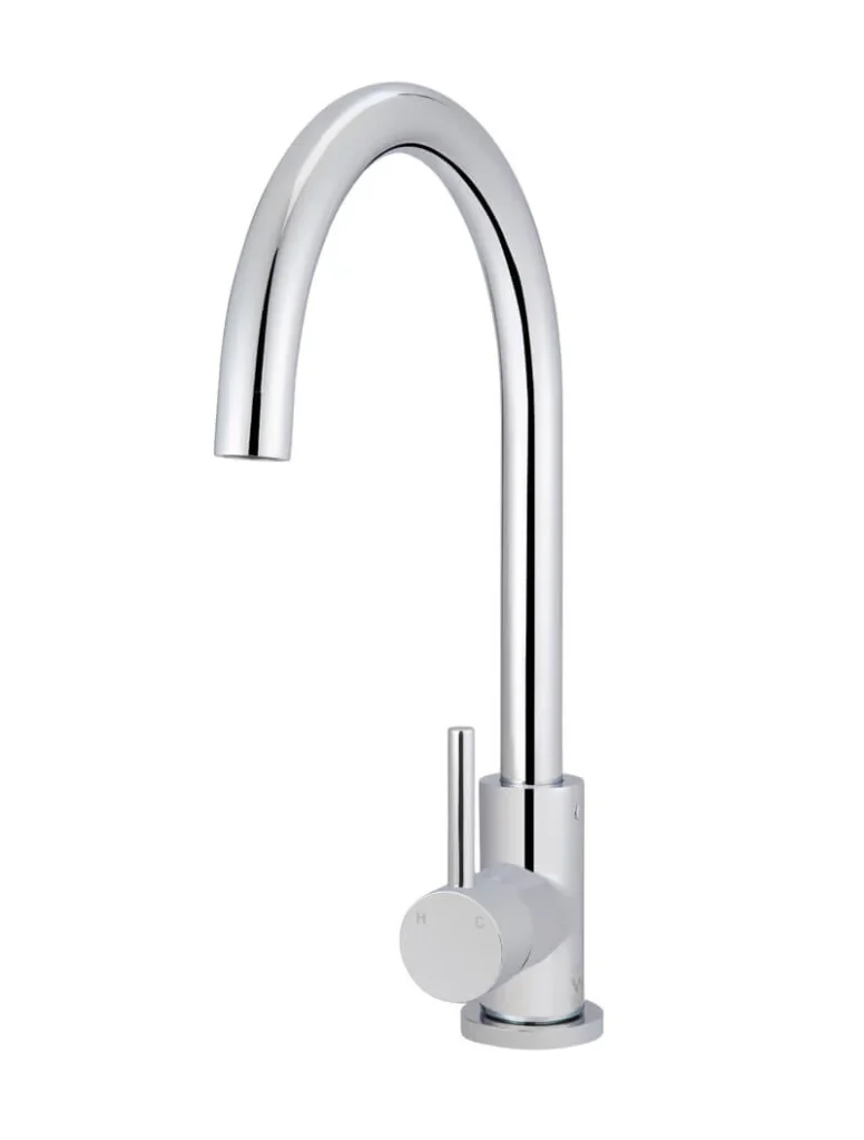 Round Gooseneck Kitchen Mixer Tap with Paddle Handle