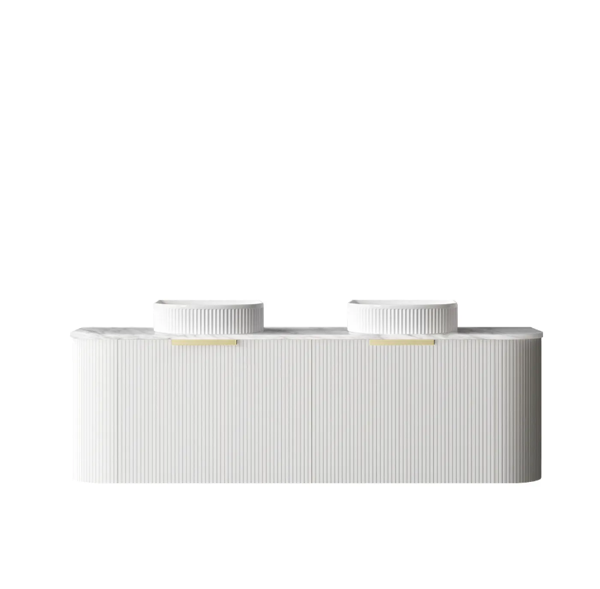 Bondi 1500mm Satin White Fluted Wall Hung Curve Vanity