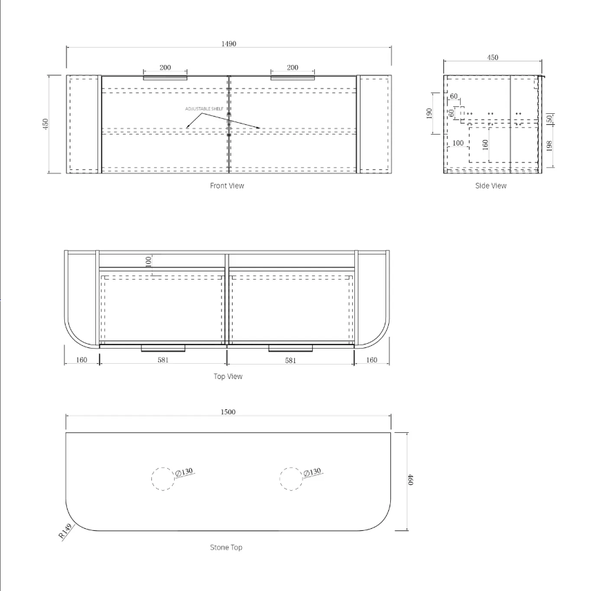 Offered with optional details, selecting from cabinet colour, handle finished and stone