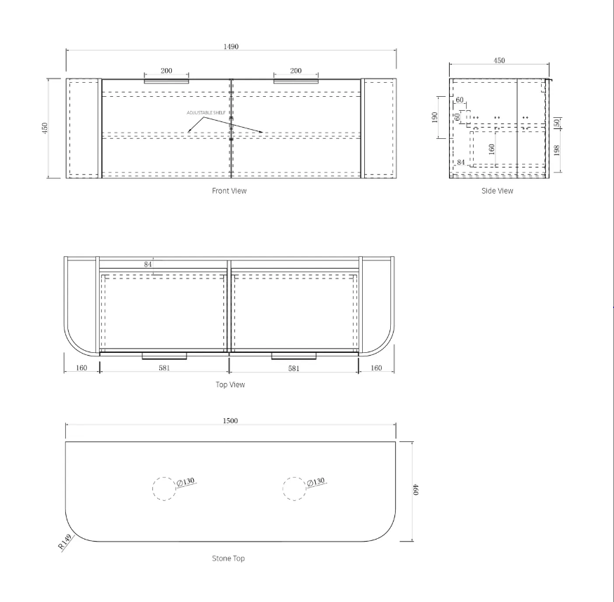 Bondi Vanity is a next-generation bathroom vanity crafted with advanced curved plywood technology and a durable, water-resistant polyurethane or timber-grain laminate finish. Inspired by classic furniture design, it showcases soft curves and elegant fluted detailing aligned with modern bathware trends. Featuring no drawer cut-outs and an integrated Space Saver Boxtrap waste, it maximises storage while neatly concealing plumbing. Custom options include cabinet colours, handle finishes, and stone tops.