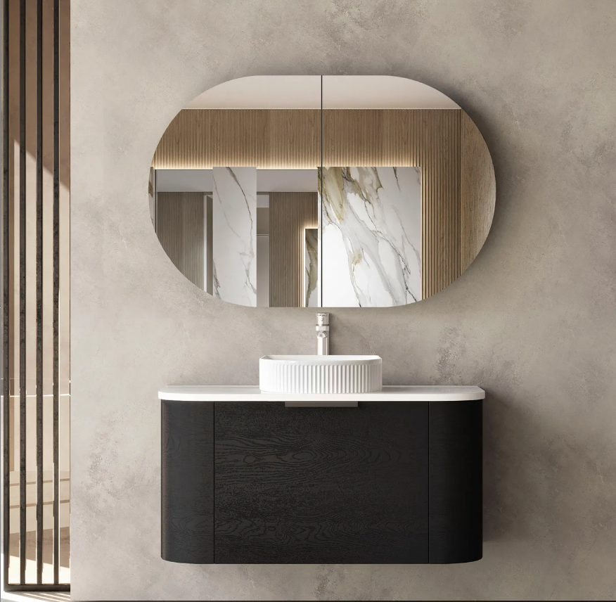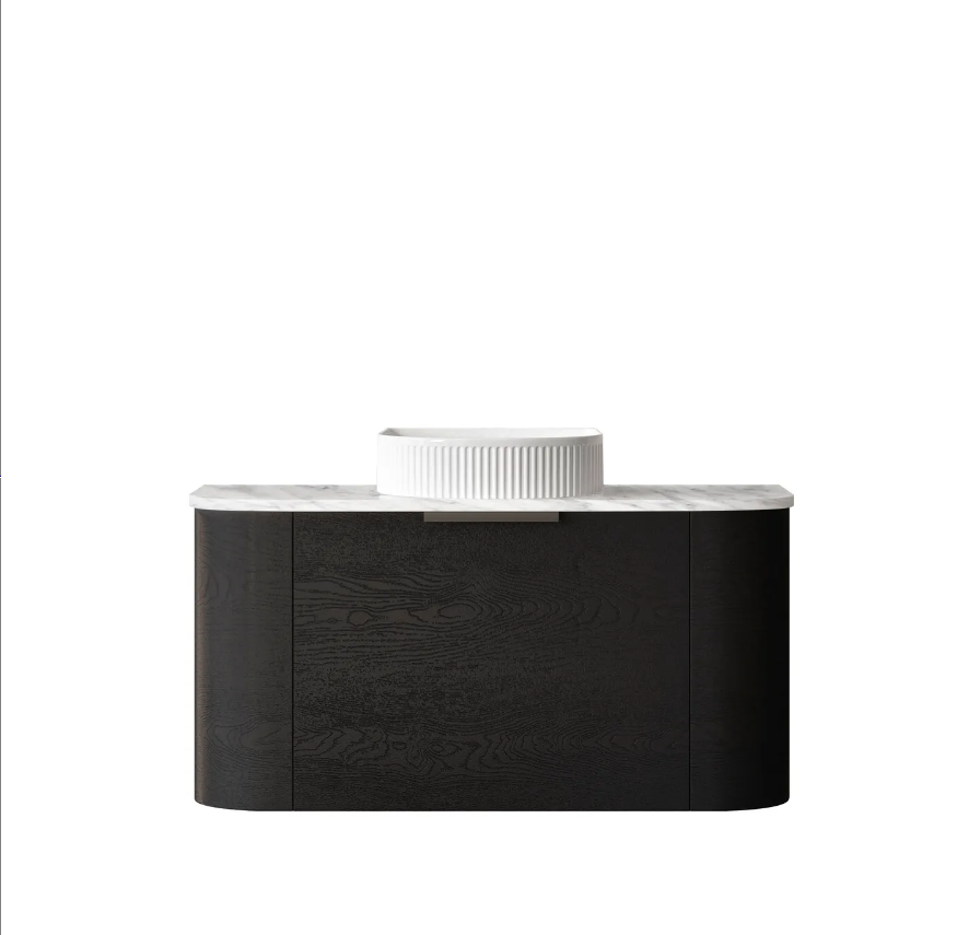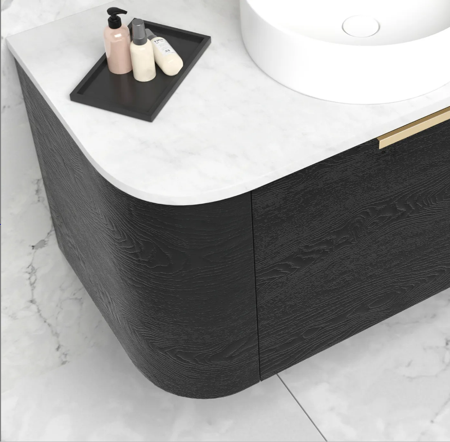 Bondi 900mm Black Oak Wall Hung Curve Vanity