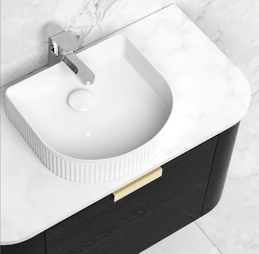 Bondi Vanity is a next-generation bathroom vanity designed with advanced curved plywood joinery and a durable, water-resistant polyurethane or timber-grain laminate finish. Drawing inspiration from classic furniture, it features soft curves, refined fluted detailing, and a clean, modern aesthetic. With no drawer cut-outs and an integrated Space Saver Boxtrap waste, it maximises storage while keeping plumbing discreetly hidden. Customisation options include cabinet colours, handle finishes, and stone tops.