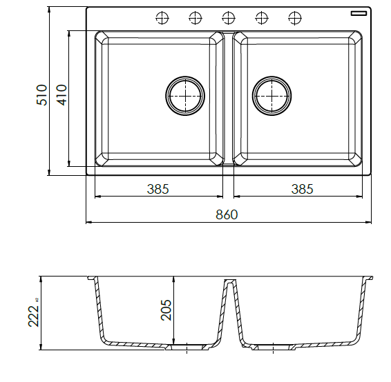Cremona Double Bowl Granite Sink – 26.5L+26.5L