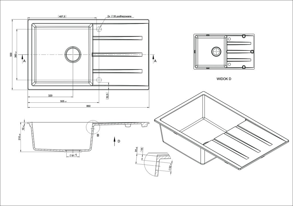 - Top Mount with drainer