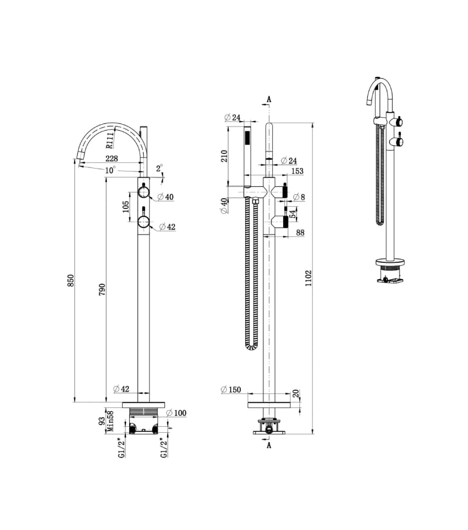 Mica Fluted Freestanding Bath Mixer with Hand Shower