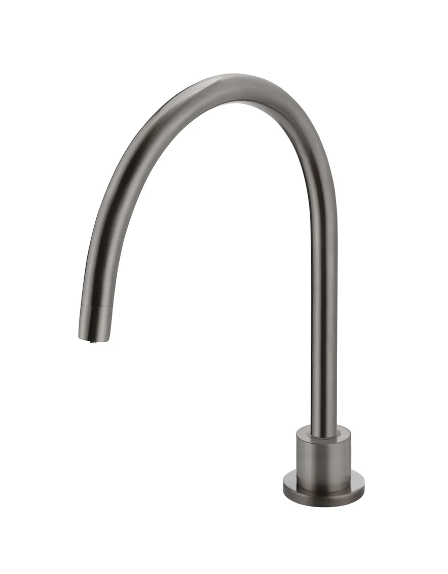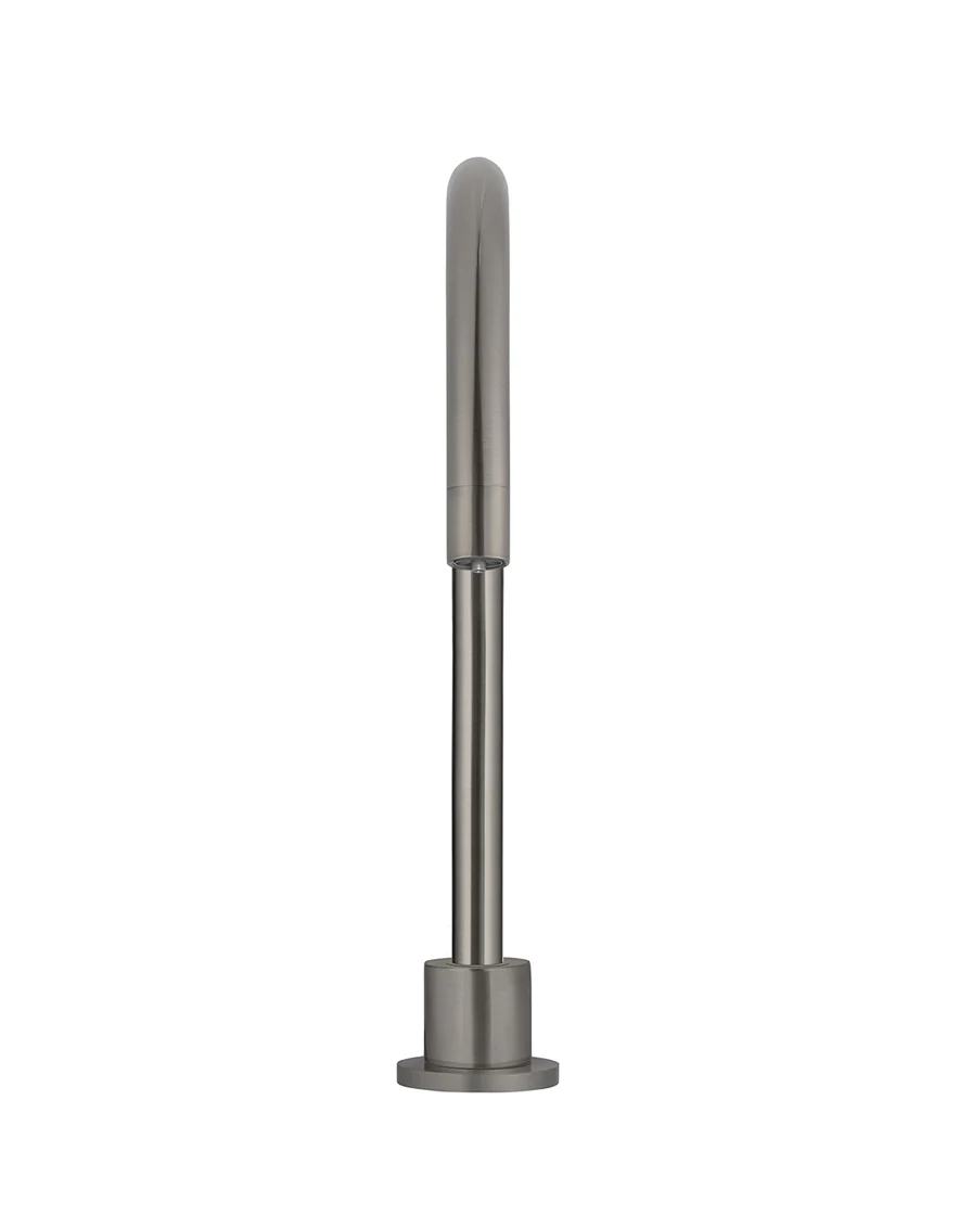 Partnering perfectly with a selection of Meir taps, the High Rise Swivel Hob Spout includes both aerator options making it suitable for both bath and basin applications. This piece creates an especially striking silhouette when paired with the Round Deck Mounted Mixer.