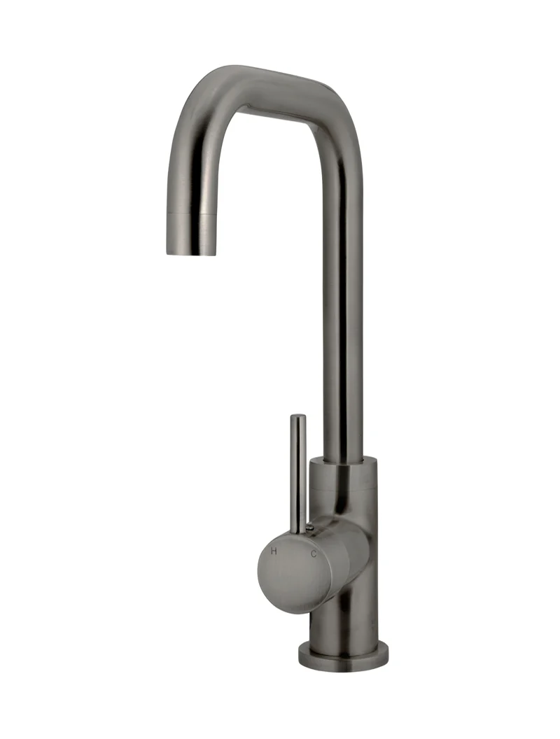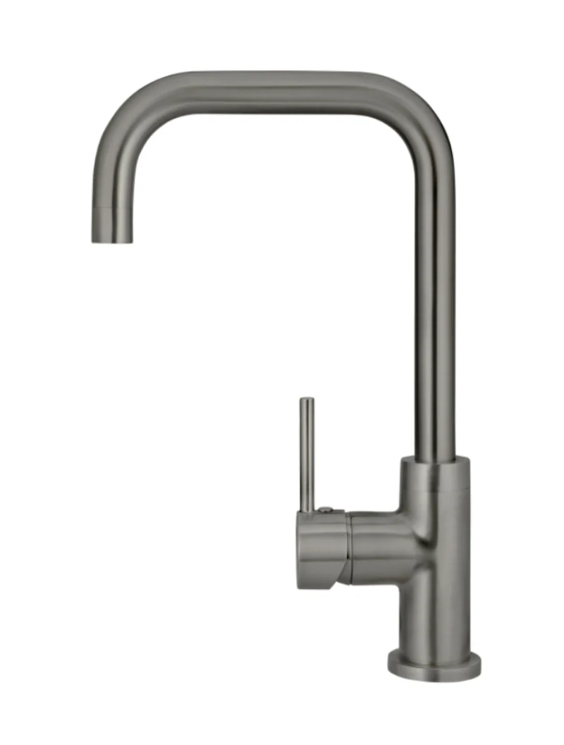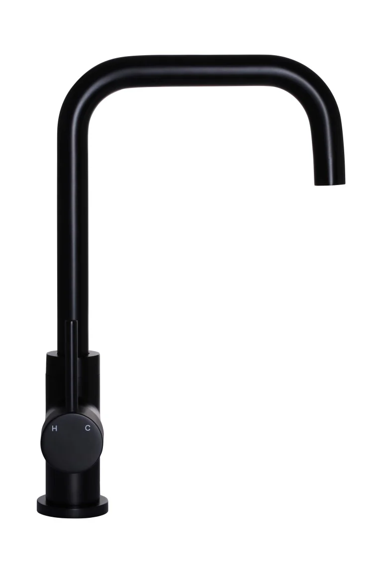 Available in Matte Black, Tiger Bronze, Champagne, Shadow Gunmetal, Brushed Nickel, Lustre Bronze and Polished Chrome, this kitchen mixer can be installed to have the handle either front-facing or on either side.