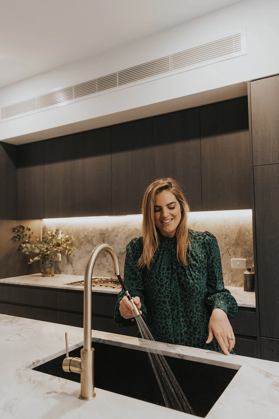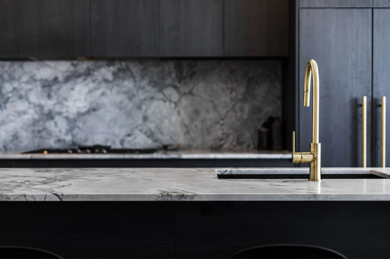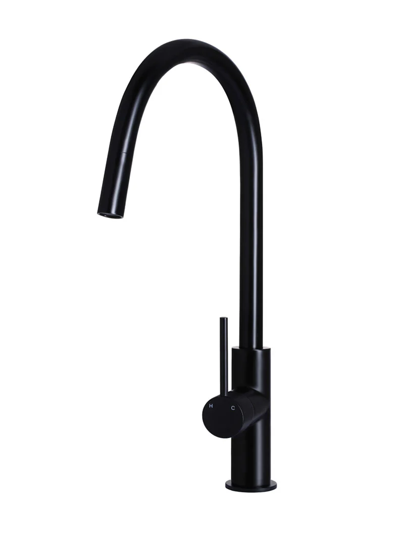 This pull-out kitchen mixer is available in a premium selection of finishes — Matte Black, Tiger Bronze, Champagne, Shadow Gunmetal, Brushed Nickel, Lustre Bronze and Polished Chrome — each offering a unique aesthetic to complement your kitchen style: