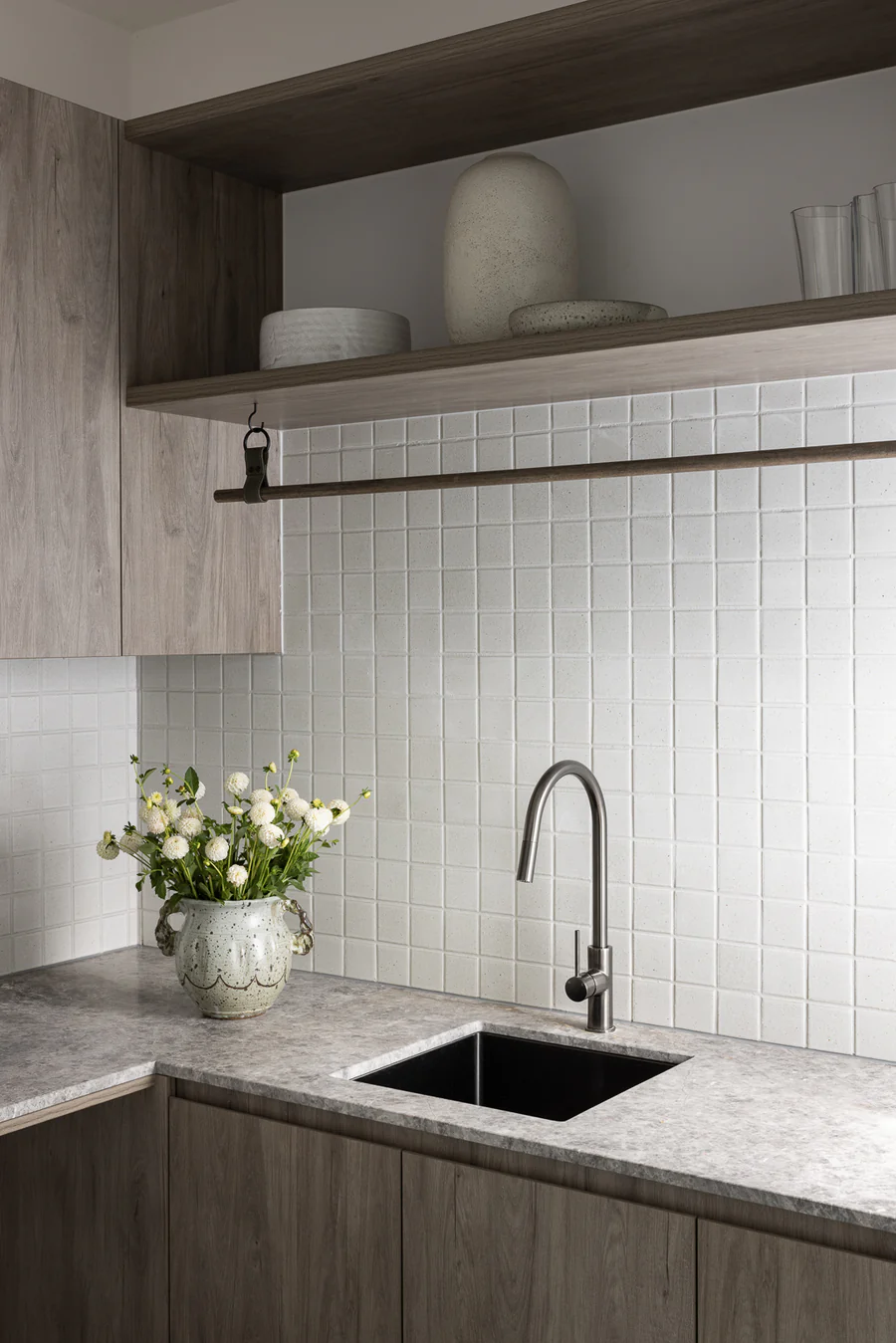 This elegant pull-out kitchen tap features a beautifully soft-moving handle and an ergonomically designed nozzle, ensuring you can comfortably reach everything in and around your sink.
