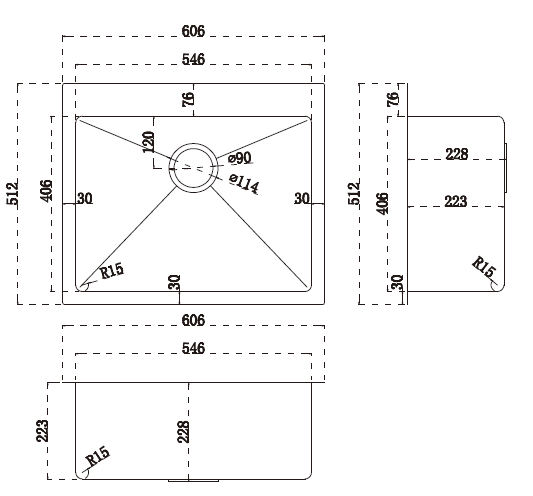 • 606 x 512 x 228 x 1.2mm