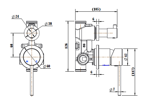 Star Mini Shower Diverter Mixer Small Backplate
