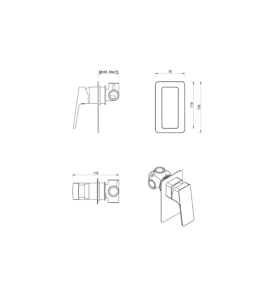 Beki Shower Mixer Diverter – 1P – TRIM KIT ONLY