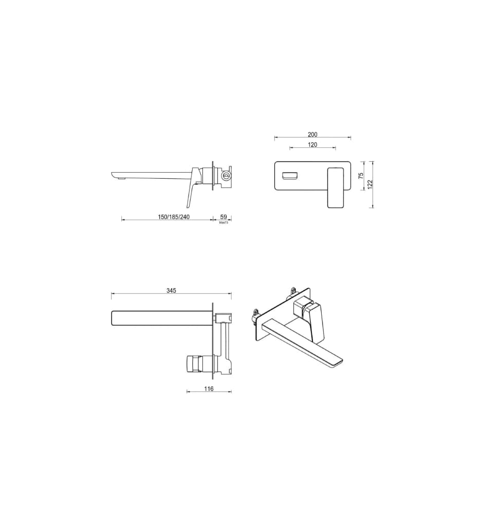 Tiago Wall-Spout Combo – 1P – TRIM KIT ONLY